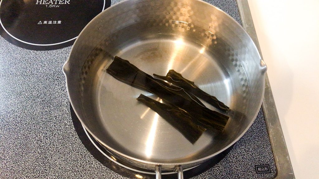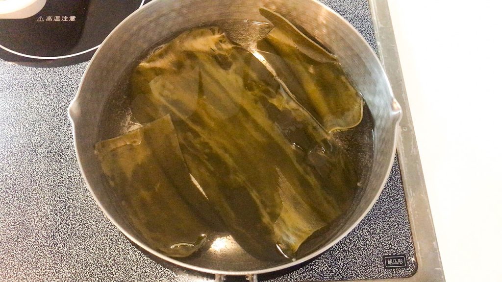 時間があれば、30分〜1時間ほど昆布を水に浸けておいてください。
