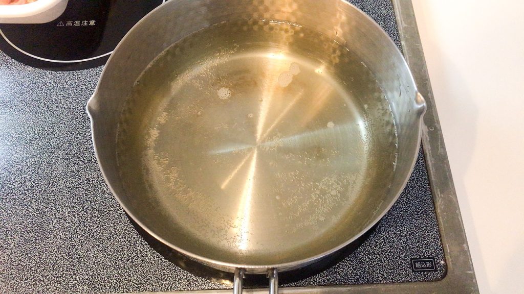汁を入れるので少し深めのフライパン、鍋をご用意ください。