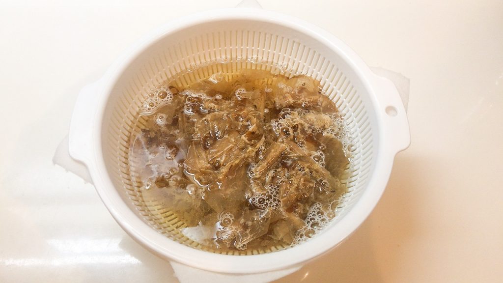 勢いよく濾すのではなく、ゆっくり濾すことでだしが澄んて綺麗に仕上がります。