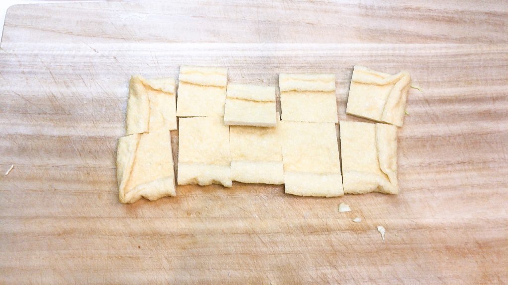 油揚げも食べやすい大きさに切ります。油抜きもしなくて大丈夫ですよ。