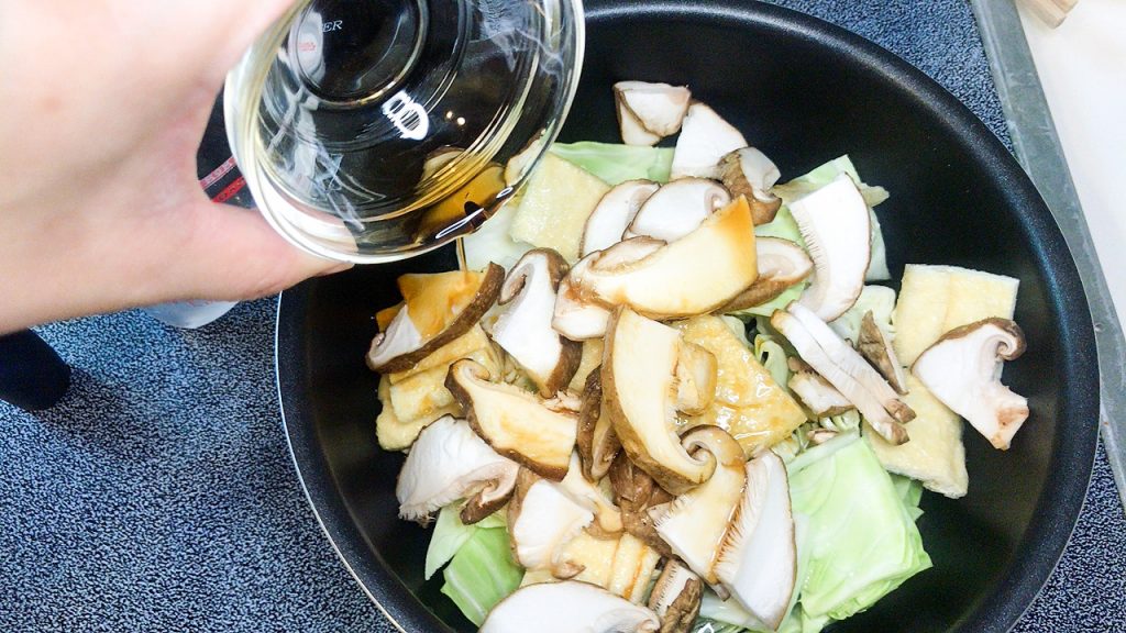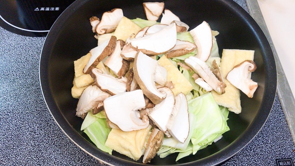 ただ、鍋の底が広くなるともっと出汁を多めに用意しないといけないので、鍋の底が広すぎずちょうど良い大きさのものを用意してください。