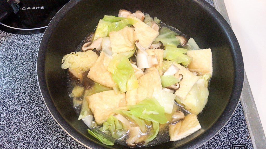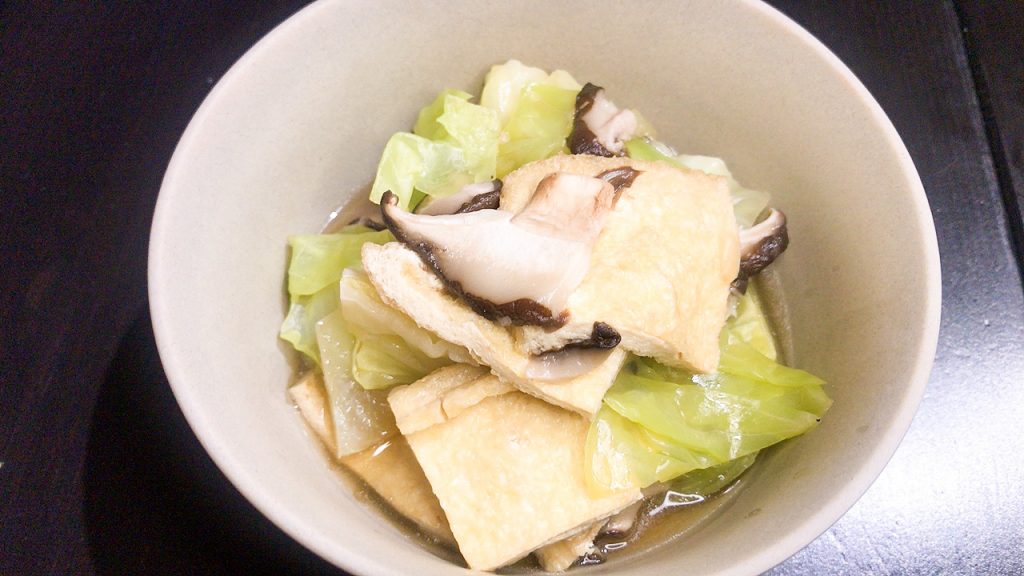 きょうの料理で放送された「キャベツと油揚げのサッと煮」のレシピを作ってみました。