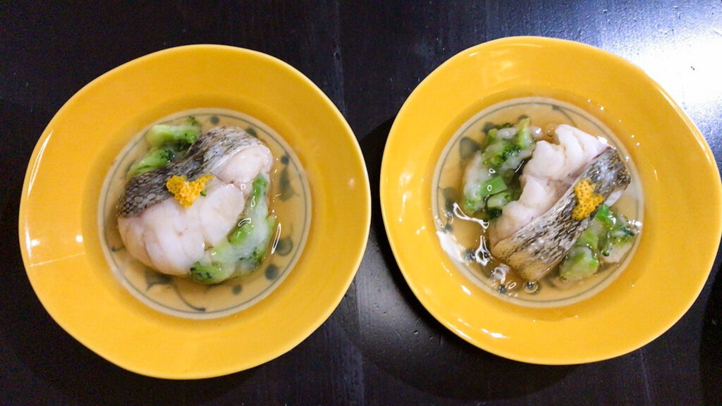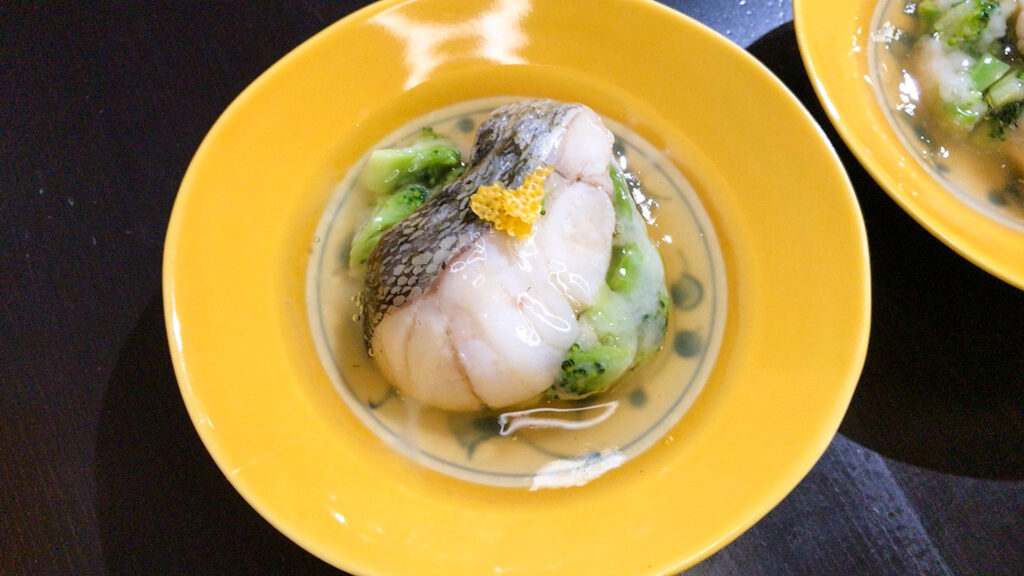 仕上げにくずあんをかけ、すりおろした柚子の皮を散らして完成です。