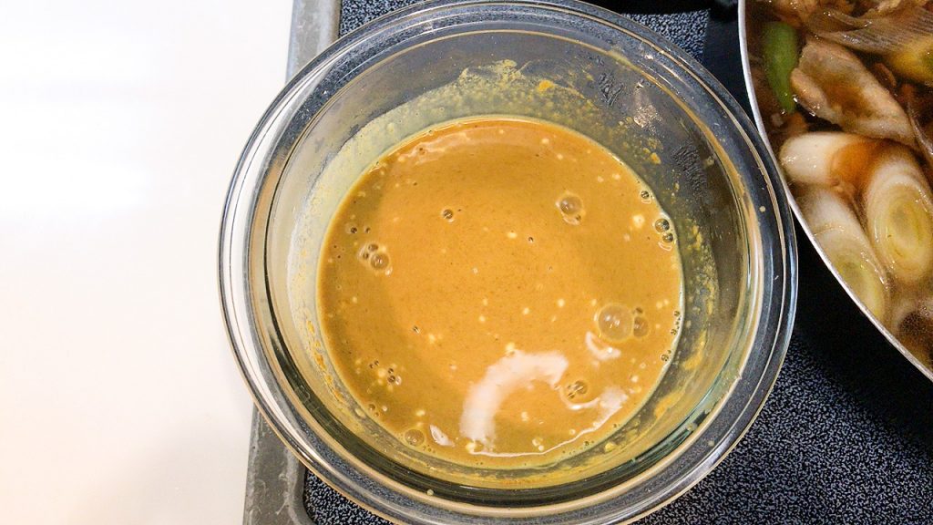 スパイスの粉や小麦粉が最初は浮いているかもしれませんが、煮ていくうちに出汁に溶けていきます。