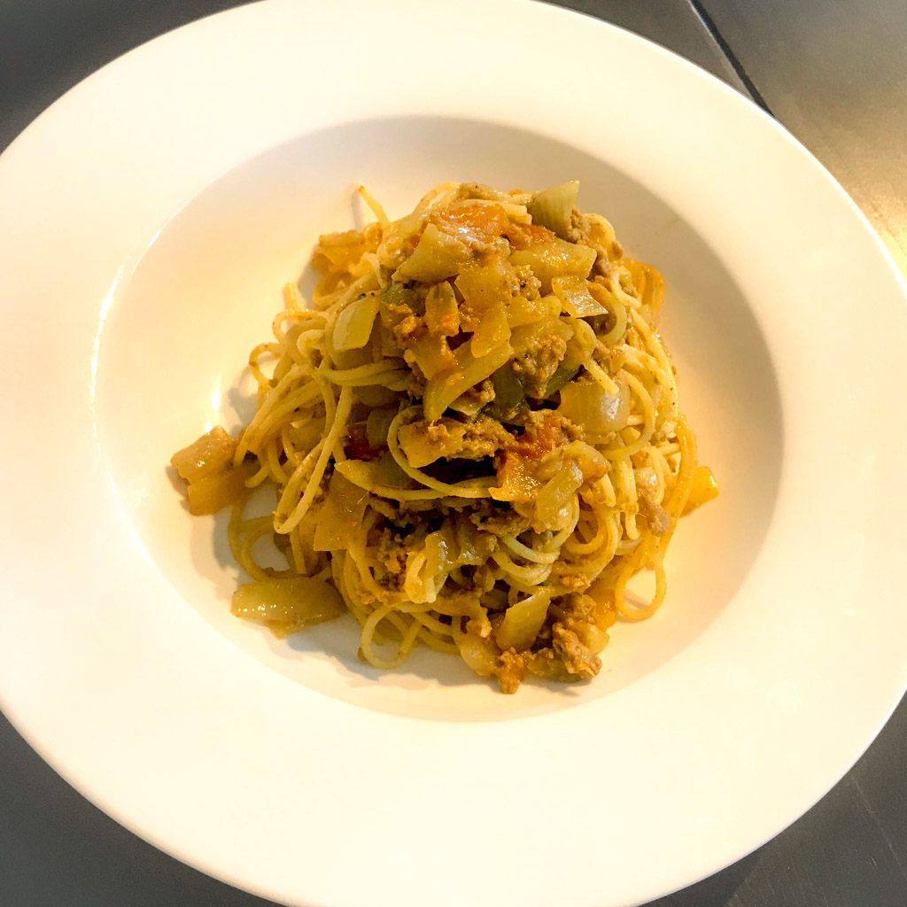 出汁キーマカレーのリメイクパスタをご紹介しました。