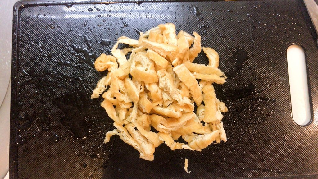 (油揚げは本来のレシピでは入っていませんが、余っていたので入れてみました。)