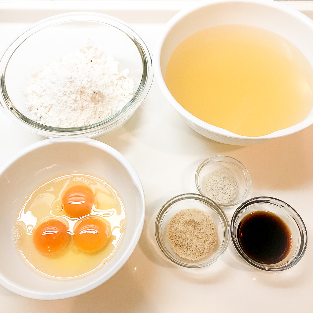 出汁の入った市販のたこ焼きの粉は使用せず、薄力粉と出汁から作っていきます。