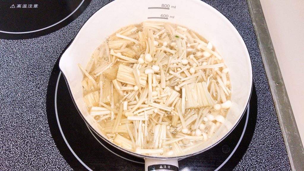 えのきなどのきのこは水分が出るので、味がぼやけないように味噌を少し多めに入れるのがポイントです。