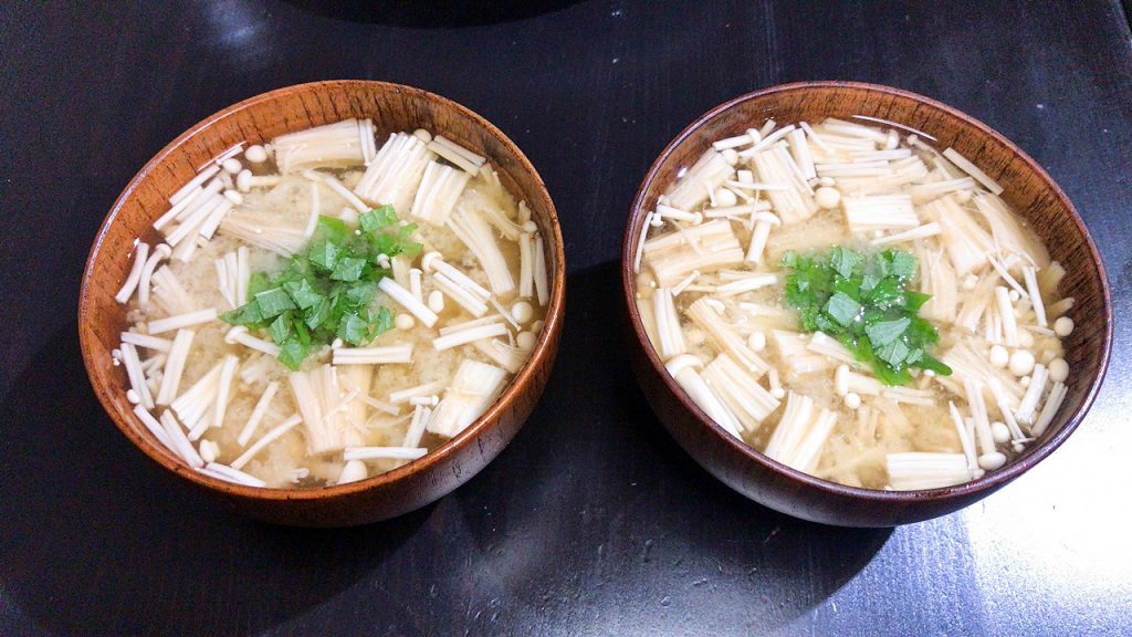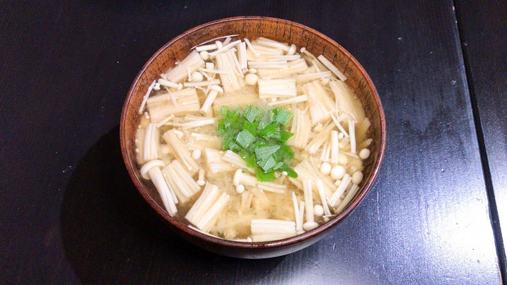 男子ごはんで放送されたえのきとしょうがのみそ汁を作ってみました。