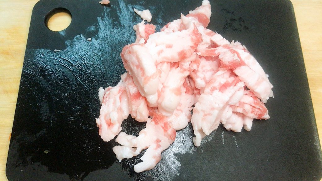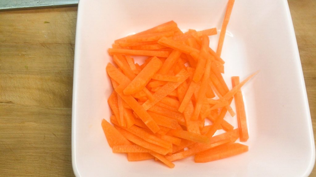 後で調べたところ、細長く切るのは千切り、これよりやや太めでマッチ棒くらいの太さに切るのが千六本だそう・・・