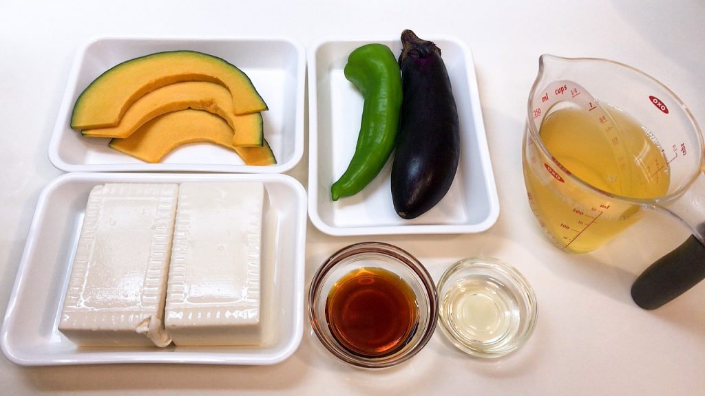 料理研究家の大原千鶴さんのレシピ、夏野菜と豆腐を使った手軽なおばんざいです。