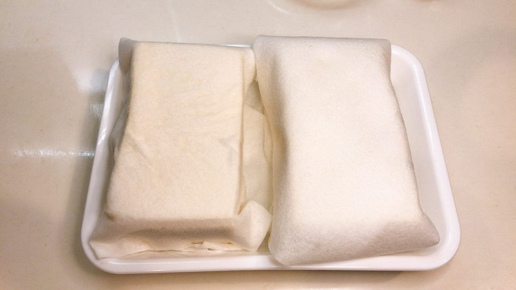 重石をのせなくともキッチンペーパーに包んでおいておけば、水切りができます。
