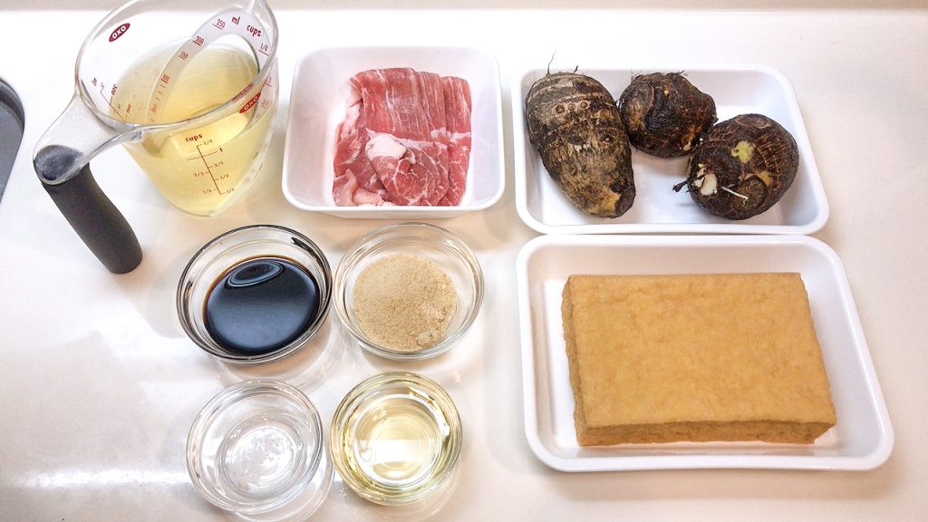 里芋、厚揚げ、豚肉の煮ものの材料(4人分)