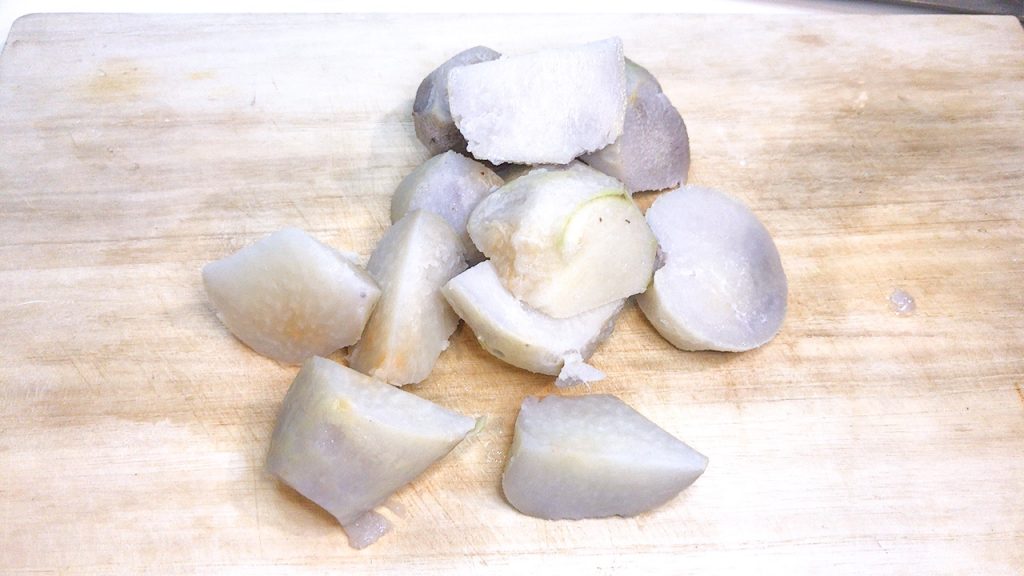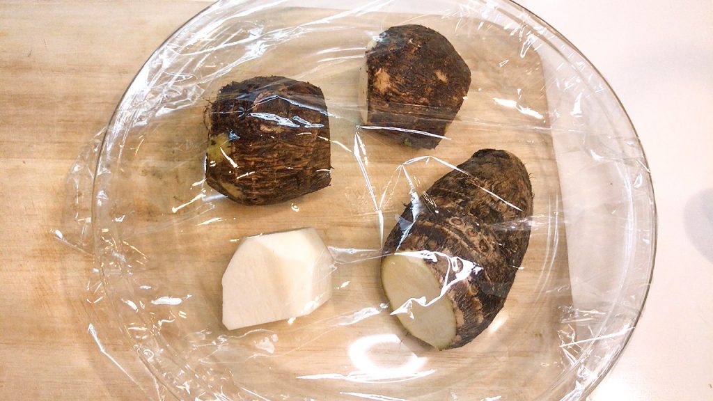 里芋を事前に火を通しておくことで、その後の調理が簡単にすみました。