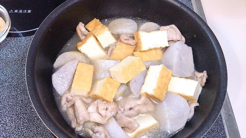 3分クッキングで放送された里芋、厚揚げ、豚肉の煮ものを作ってみました。