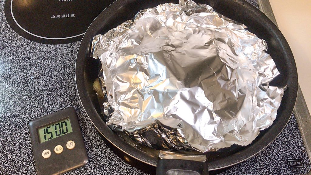 落としぶたをして煮汁がとろりとするまで15分ほど煮ます。
