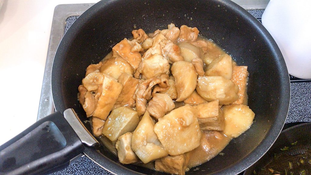 3分クッキングで放送された里芋、厚揚げ、豚肉の煮もののレシピ