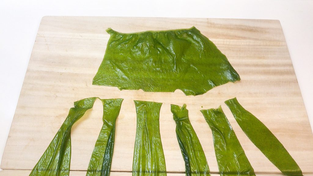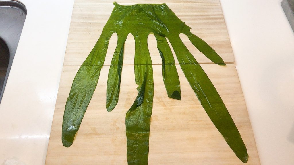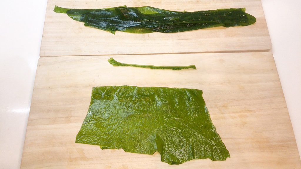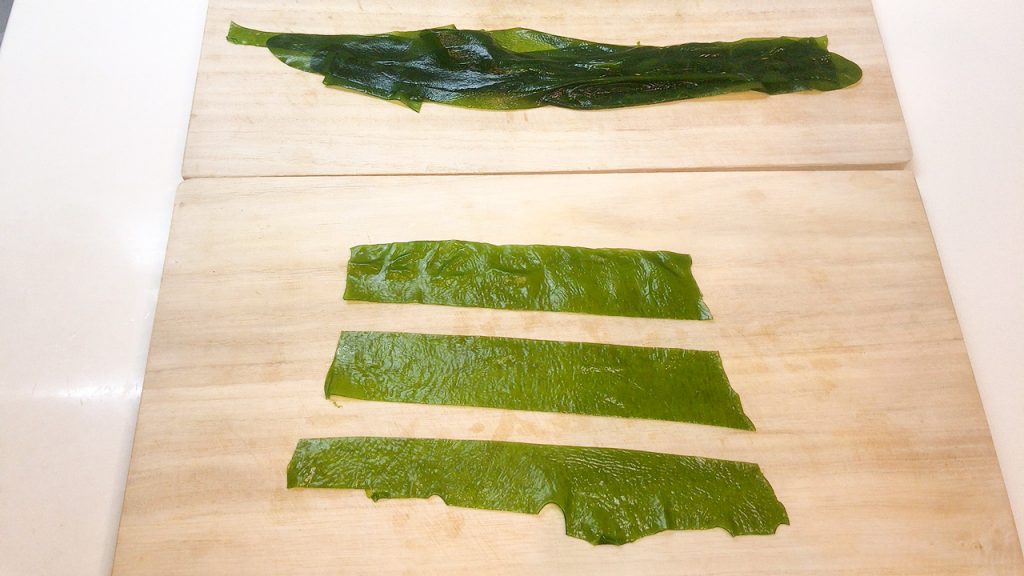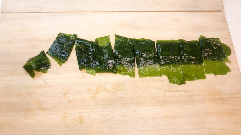 わかめは大きいと食べにくく、いただきにくいのでこのように切ります。