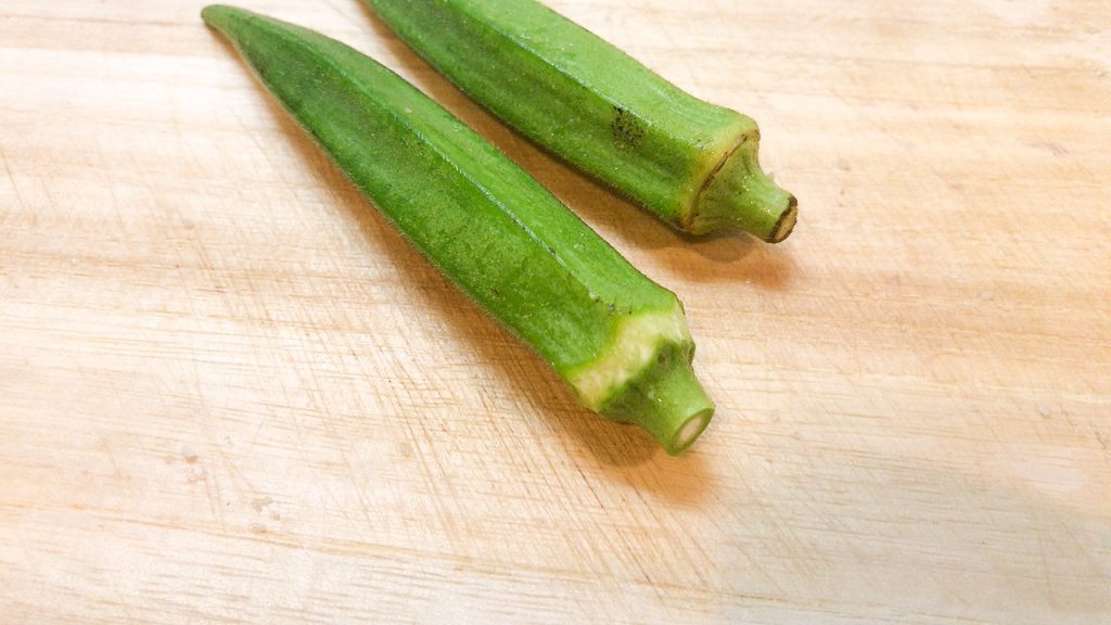 オクラはヘタの先を少しだけ切り落とし、ガクの部分を薄くむきます。
