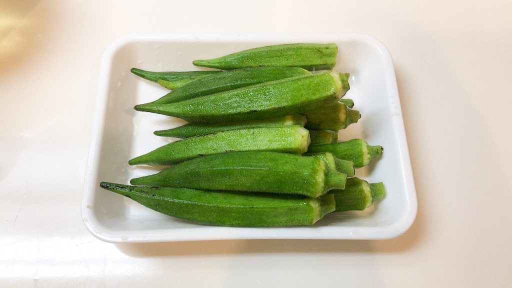 • 塩          小さじ1/3(味付け用)小さじ1/4(オクラ板ずり用)