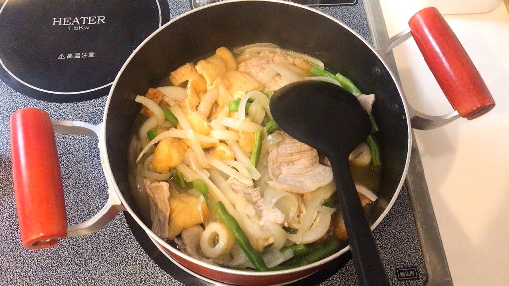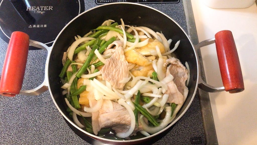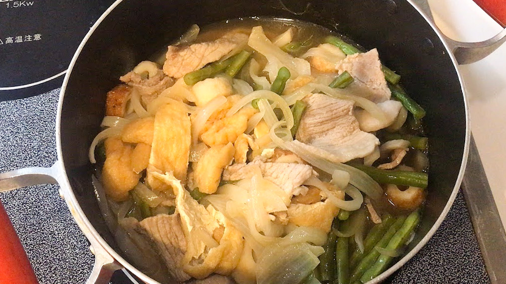 豚肉・野菜を加え、落とし蓋をして15~18分煮ます。