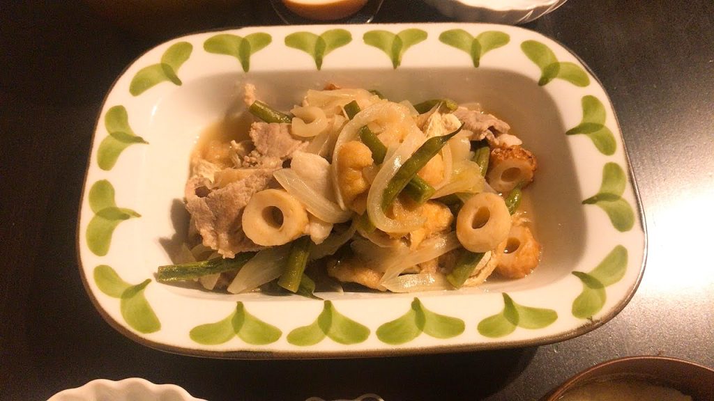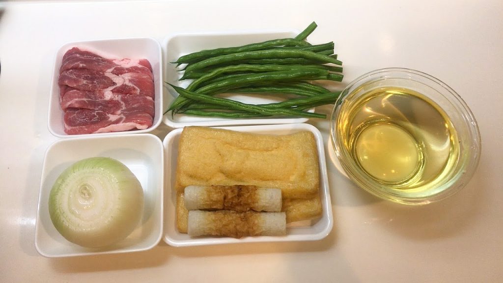 日本テレビ系列「キユーピー3分クッキング」で放送された豚肉・いんげん・油揚げの煮ものを作ってみました。