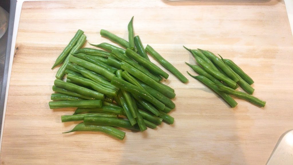 本来のレシピはいんげん200gなのですが、100gしかなかったのでちくわを加えました。