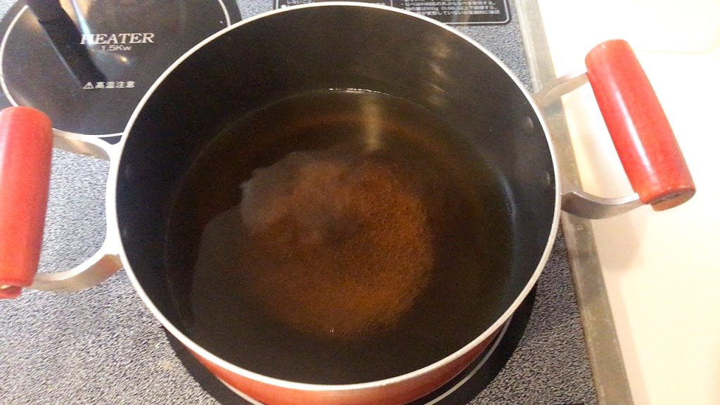 火をかける前に煮汁の材料を入れてから火をつけます。