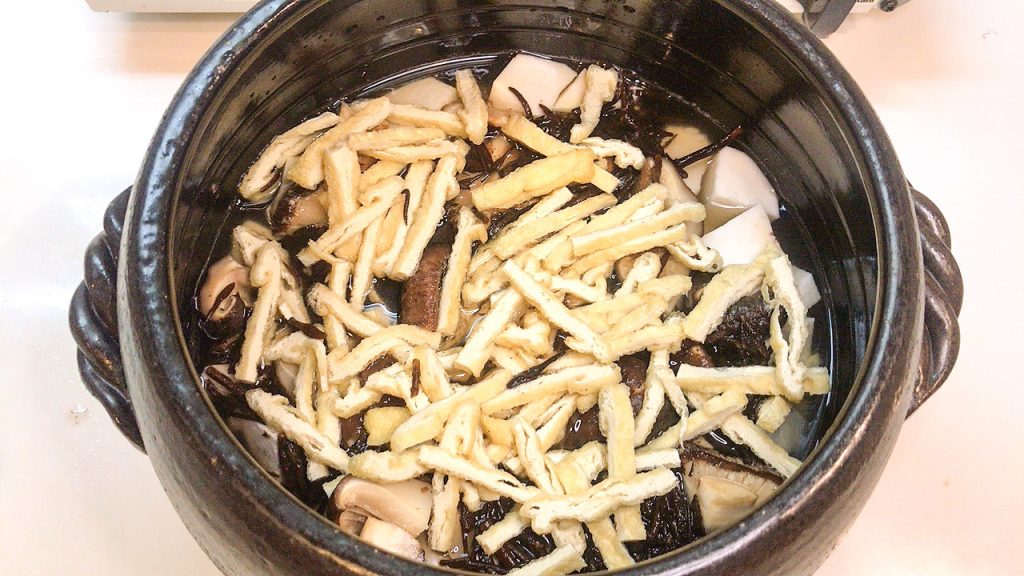荒木典子さんがご紹介していたレシピで、干し椎茸の出汁(戻し汁)と昆布を使っています。