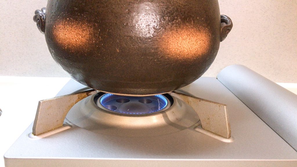 土鍋はふたをして強火にかけ、煮立ったら弱火にして10~11分炊き、火を止めて、そのまま10分蒸らします