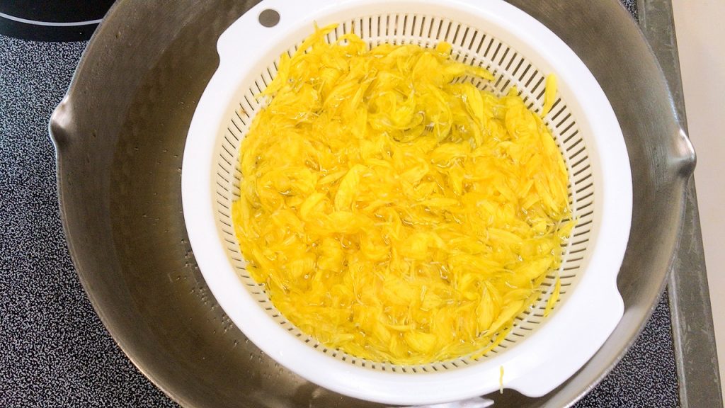菊花もすぐに火が通るので15秒くらいで鍋からひきあげます。