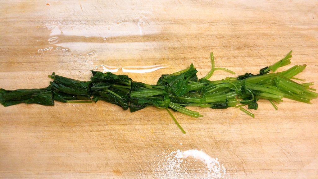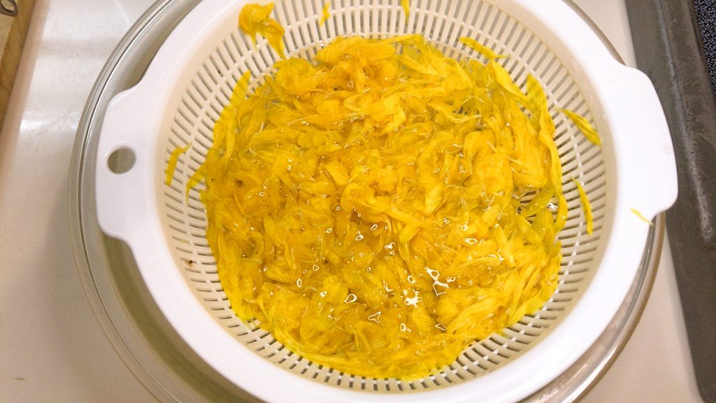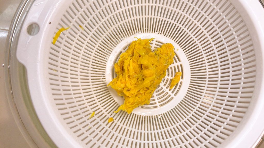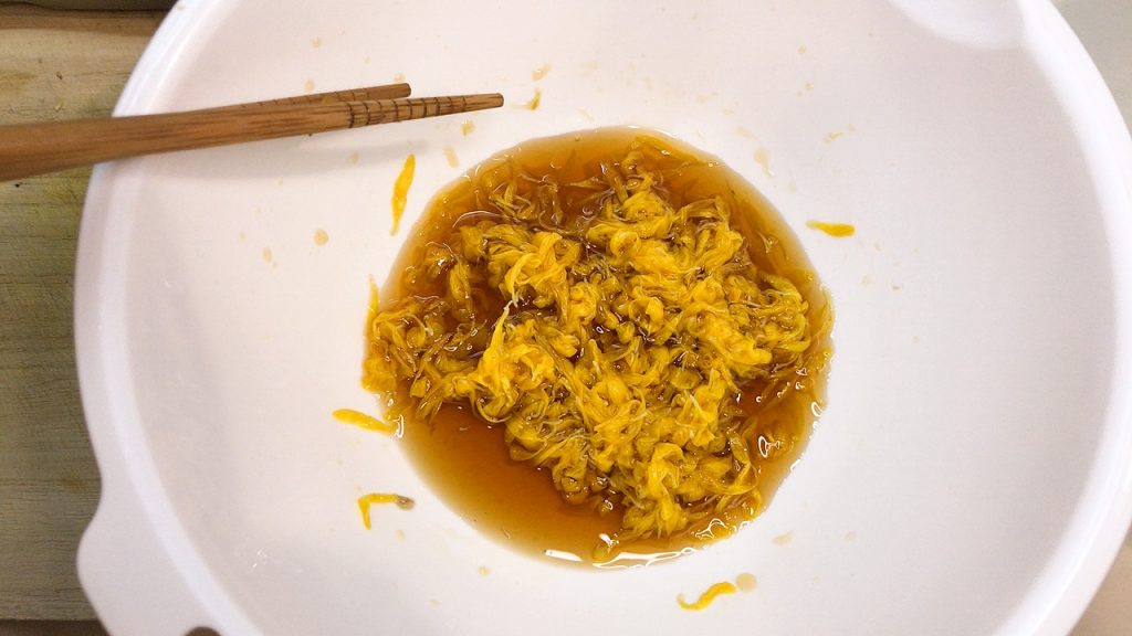 菊花をぎゅっと絞ってもつぶれずシャキシャキ感が残ります。