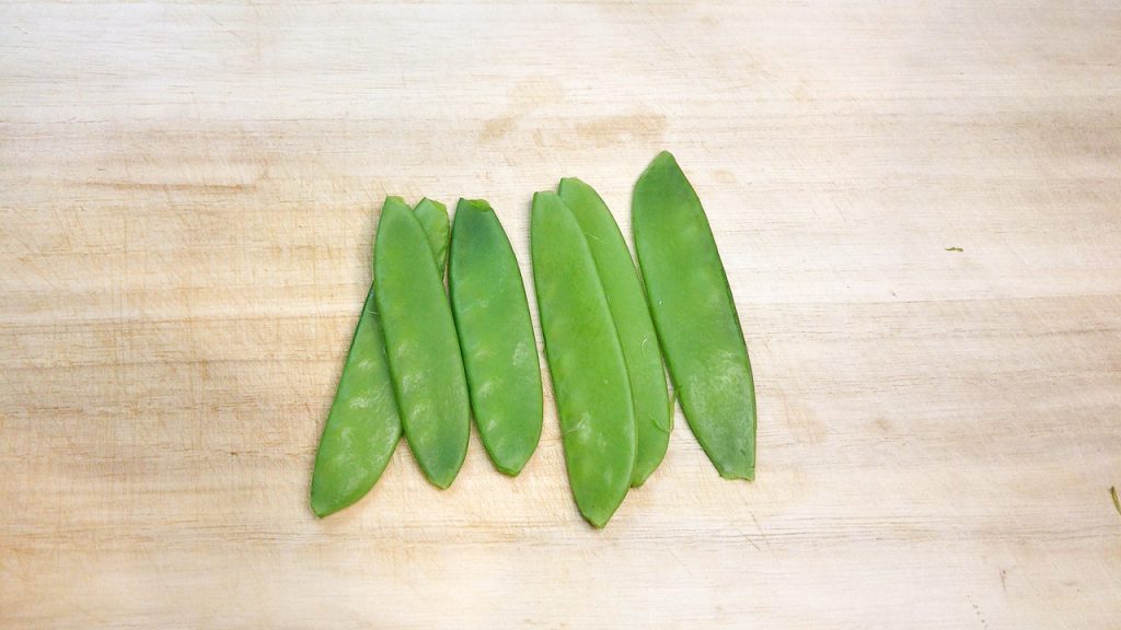 大根が色づき、柔らかく煮えたのを確認したら、絹さやを加えて30秒ほど火を通します。