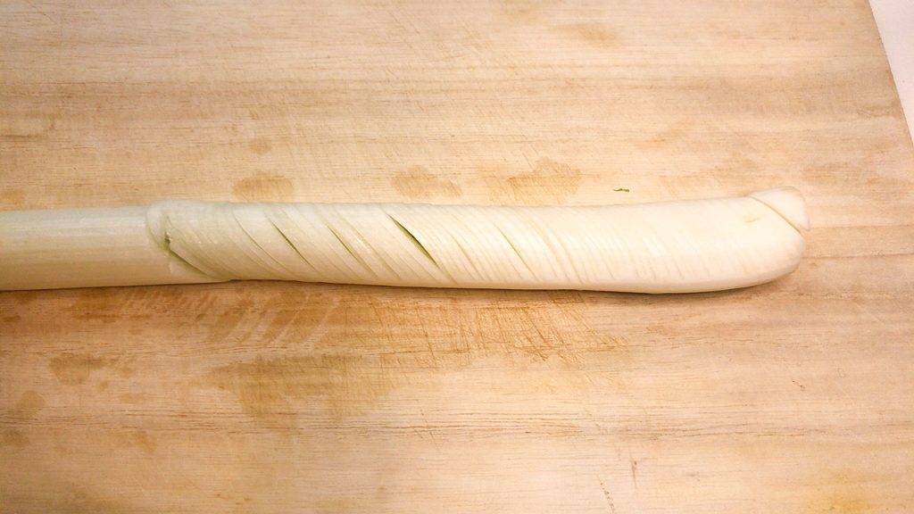 つみれにいれる長ねぎは1本のうち15cmほどをみじん切りにします