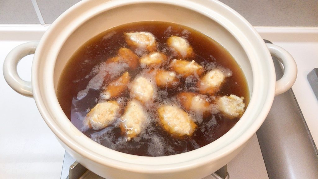 肉だねが浮いてきてアクや余分な脂が気になれば取り除きます。