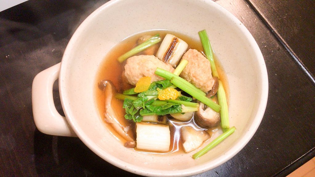 • 柚子の皮    少々(そぎ切り、食べる直前にスープに浮かべる)